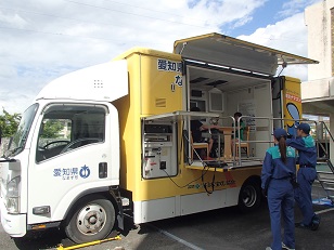 今日は学校に起震車「なまず号」が来てくれました。毎年6年生が体験をしています。
