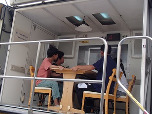 あまりの揺れに笑ってしまった子もいました。起震車を下りてから、「安全って分かってるから笑えるんだけど・・・。本当だったら、ねえ」と友達と顔を見合わせていました。