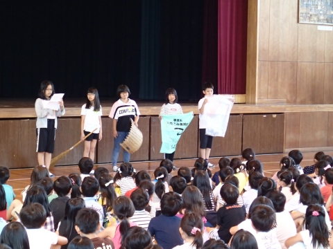 6月17日(月)朝礼で環境委員会の発表が行われました。