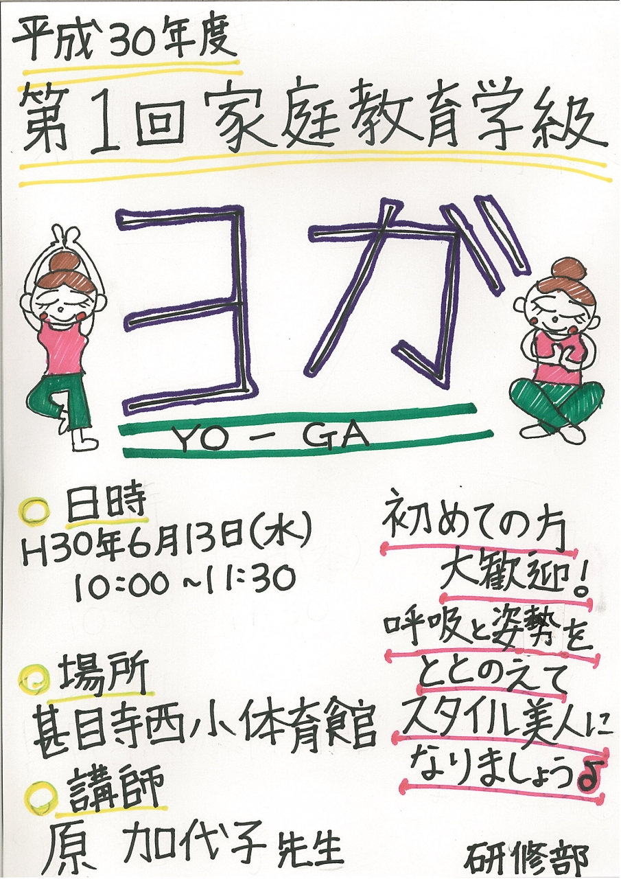 PTAでは、第1回家庭教育学級「ヨガ」の参加者を募集しています。