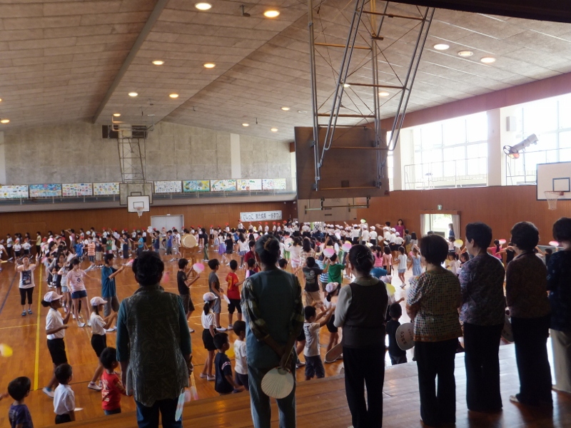 今年も運動会では、「地域ふれあい種目」として、地域の皆さんとともに『甚目寺小唄』を踊る予定です。この日は、甚目寺民踊クラブの皆さんをお招きし、子どもたちの練習の成果を見て、気をつけるとよい点を教えてもらいました。運動会当日は、昼食後の一番の種目として予定をしていますので、多くの皆さんにご参加いただけたらと思います。