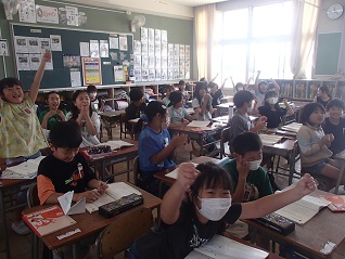 音読で盛り上がる3年生。「先生、もっとやりたい!」と声が上がっていました。