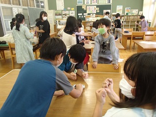 クラブの初回。参加するのは4年生から6年生です。他学年との関わりを大切にすることも目的の一つなので、どのクラブでも学年が混じって楽しそうに活動する姿が見られました。
