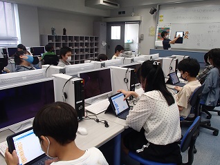 コンピュータ室で先生の説明に聞き入っていたのは、ICTクラブの子どもたち。