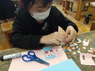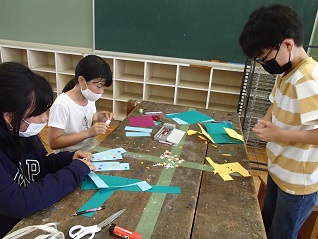 最後は、図工室で活動していた工作・イラストクラブです。オリジナルのしおり作りに熱中していました。