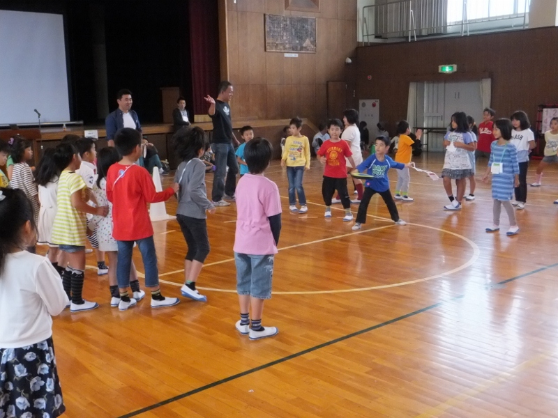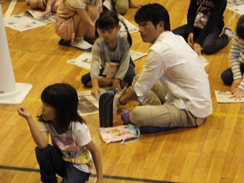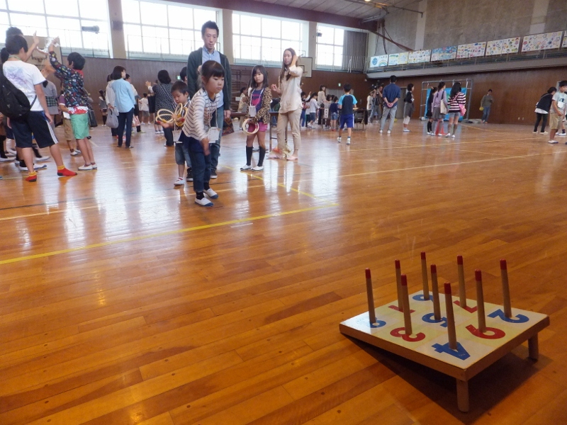 恒例のPTA親子レクリェーションが行われました。約300名の親子が参加して下さり、大盛況の中、終えることができました。PTA役員さんが準備して下さった様々なブースに列を作って楽しんだ後は、親子でドッジビーやドッジボールも楽しみました。親子工作は、新聞紙を使って”グローブ”を作りました。最後に、これも恒例となったビンゴ大会を行い、大きな盛り上がりを見せました。