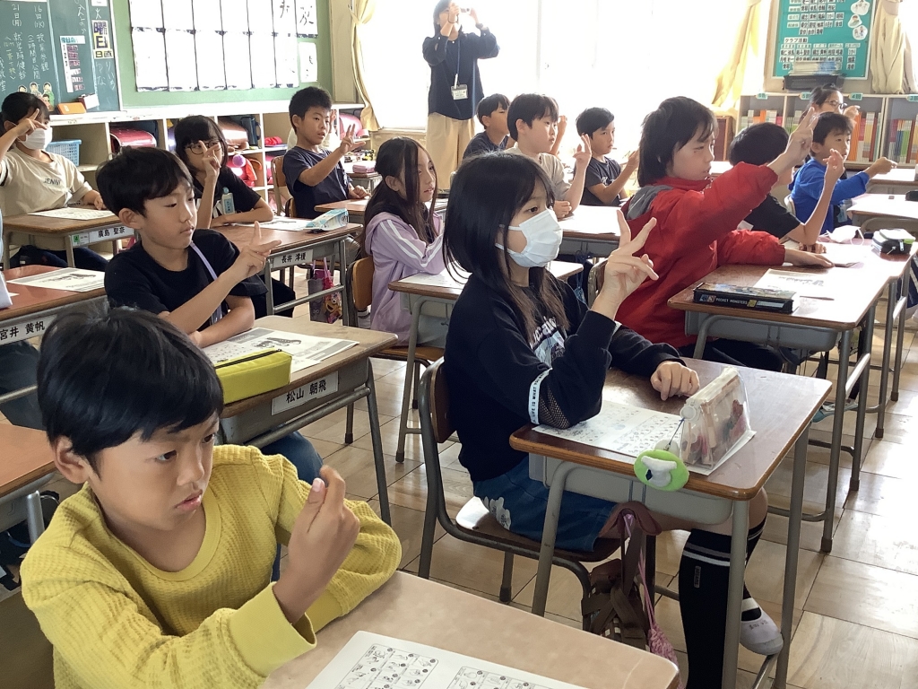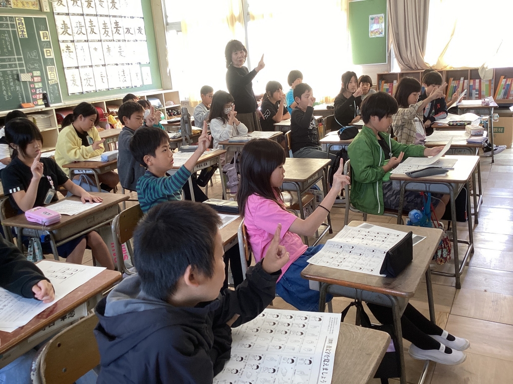 10月22日(火)に福祉実践教室を行いました。聴覚に障がいをもつ方と手話通訳の方、6名を講師としてお招きし、各教室で学びました。指文字や手話を実際に教えていただき、子どもたちも興味津々でした。あっという間の60分間の授業でしたが、これからの生活の中でも、障がいをもつ方と積極的に交流していこうという気持ちを高める機会となりました。
