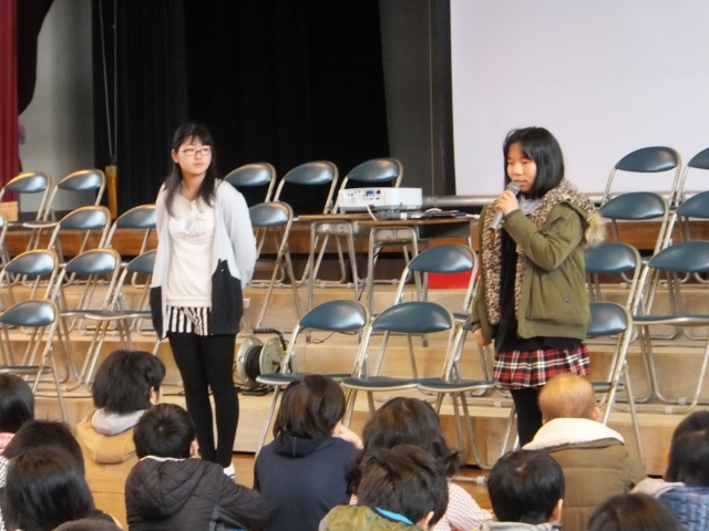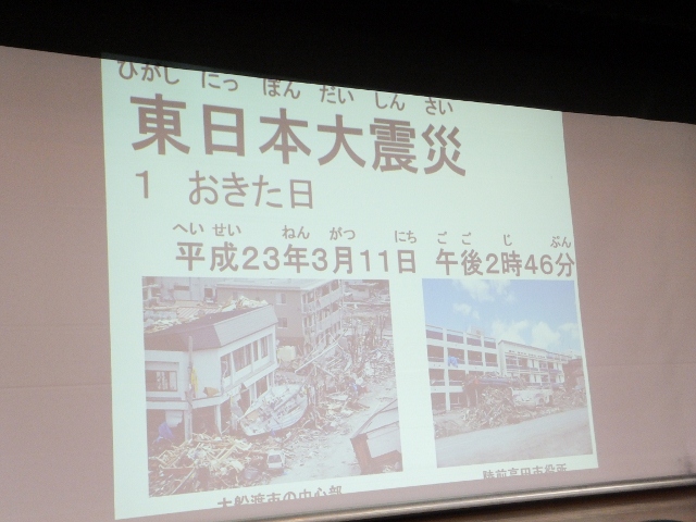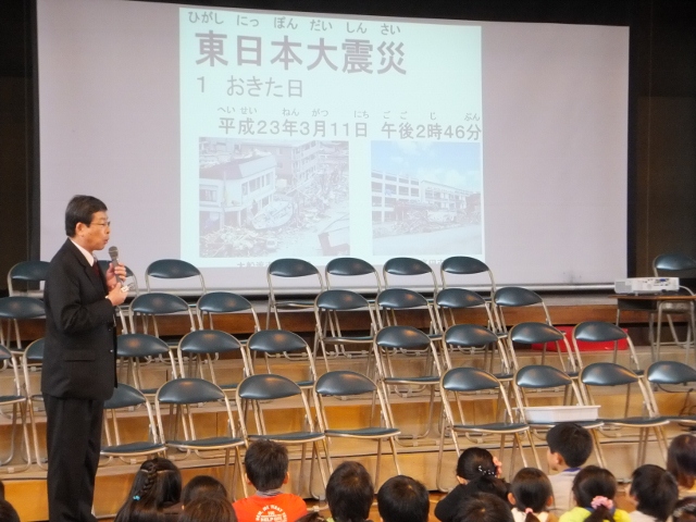 目を覆いたくなるような光景を目の当たりにした『東日本大震災』が発生してから、4年目を迎えようとしています。震の規模はマグニチュード 9.0で、発生時点において日本周辺における観測史上最大の地震でした。復興へ道は険しく、未だ、避難生活を余儀なくされている方がたくさんいます。この日の朝礼では、校長先生が、東日本大震災をふり返りながら、子どもたちに、防災意識を高めることの大切さや互いに支え合うことの必要性を踏まえ、子どもたちに話をされました。