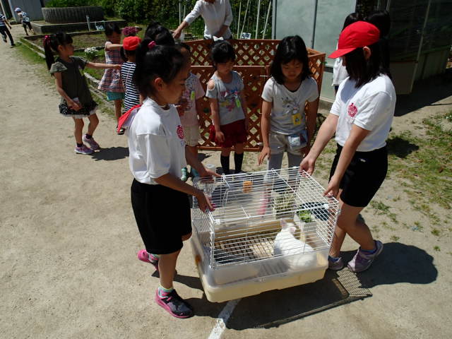 甚目寺西小学校ではウサギを一羽飼っています。