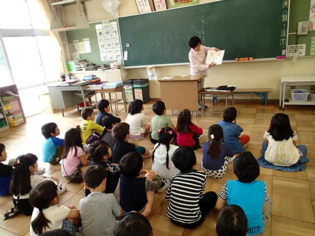 5月25日(木)朝、「図書ボランティア読み聞かせ」が行われました。