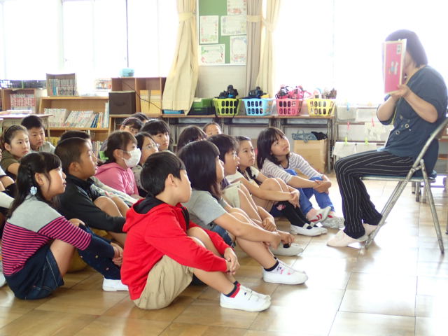 当初、ボランティアの方の参加が5名で、4年生2クラスを合同で実施する予定でしたが、お一人参加していただけることになり、各クラスごとで読み聞かせをしていただくことができました。ありがとうございました。
