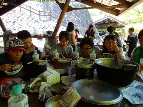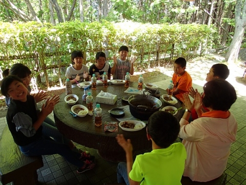 48人全員が、旭高原へ出かけ、ウォークラリーや創作活動、キャンプファイヤーに飯ごう炊飯「カレー作り」を行いました。