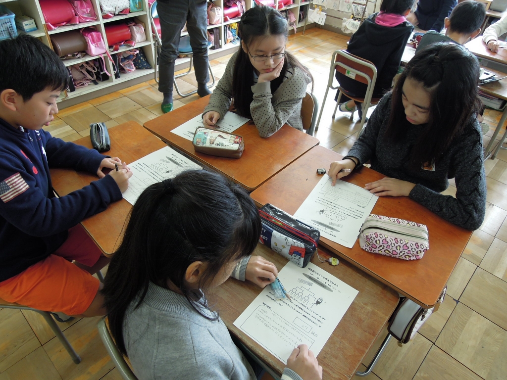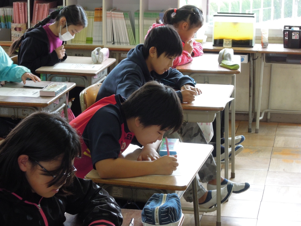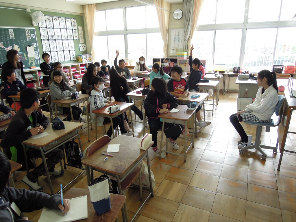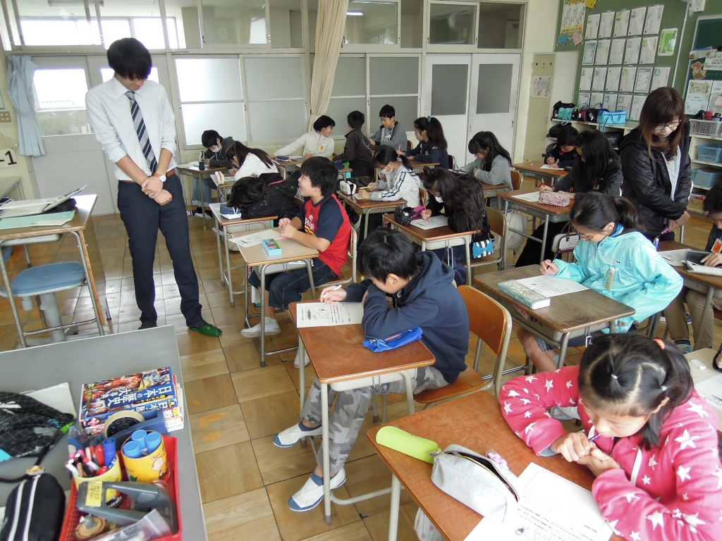 『出前授業』とは、中学校の先生が小学校に出向き、授業を行うものです。
