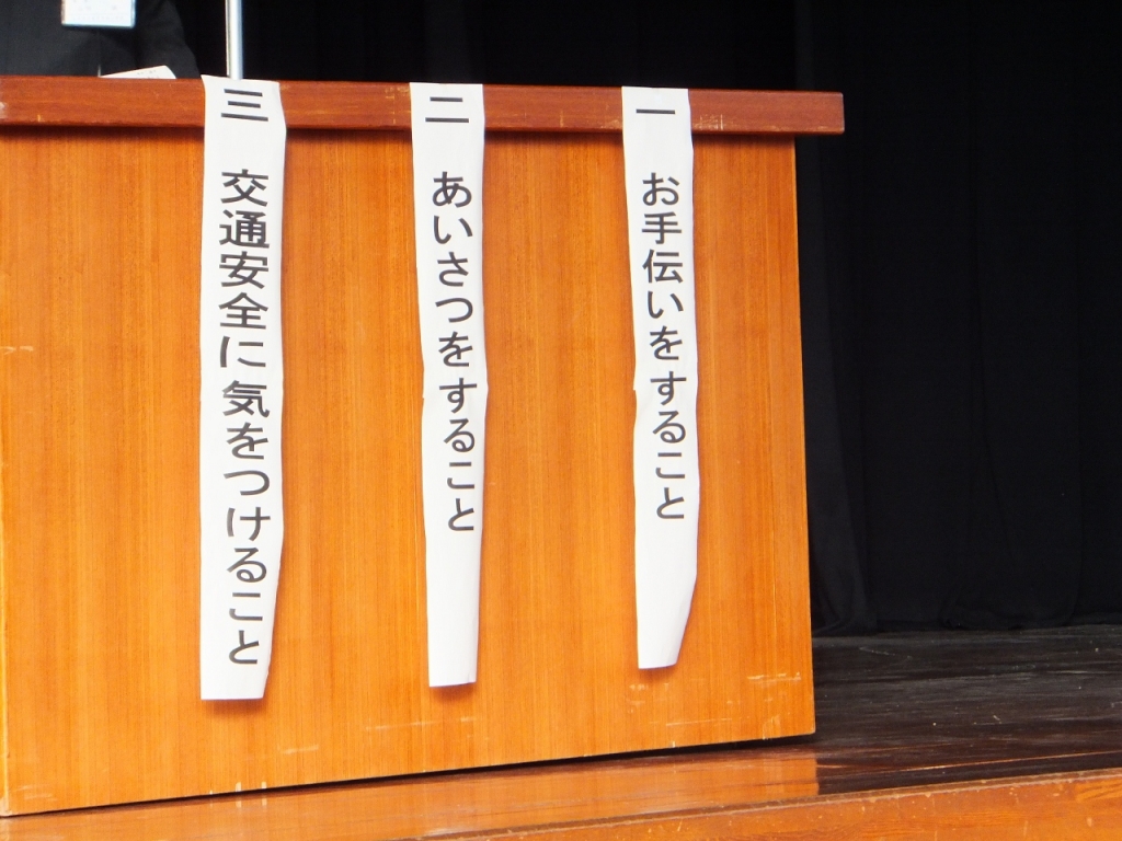 2学期終業式を行いました。運動会に学習発表会、社会見学と、大きな行事がたくさんありました。子どもたちは、同級生はもとより、上級生や下級生、保護者、地域の方々等との温かいふれあいを通して、着実に成長していってくれたようです。校長先生から、「冬休みに守ってほしいこと」を含めて、2学期を締めくくるお話をしていただきました。