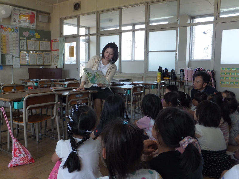 図書ボラティアの方々のよる、2回目の「読み聞かせ」が行われました。小さい子には、情操教育文字の習得などに効果があるといいます。年齢が上がっても読書への導入としても有効であり、集中して話を聞く訓練にもなりうるため、子どもたちの健やかな成長を願う、本校の保護者ボランティアの方々が、取り組んでくださっています。この日も、子どもたちは皆、しっかりと情景を思い浮かべながら聞き入っていました。