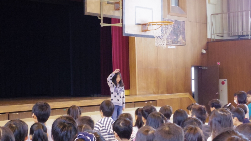 あと10日で卒業式を迎えます。明後日には6年生を送る会も計画されています。この日の朝礼では、6年生で送る会で歌う歌を、指揮者にあわせて歌う練習をしました。6年生の心に残る会になることを願っています。