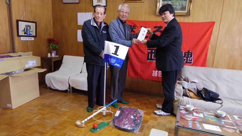 愛知県グランドゴルフ協会の皆さんから、「グランドゴルフセット」をいただきました。いただいた物を以下の通りです。