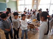 卒業式を前にして、一足先に6年生の修了式を行いました。代表児童が修了証を受け取り、修了式が無事済んだところで、養護教諭から成長の記録のプレゼントがありました。成長の記録カードは、身長が6年間で伸びた分と同じ長さのリボンが結んであり、ほどいてみると、予想以上の長さでびっくり!大きくなったんだね。
