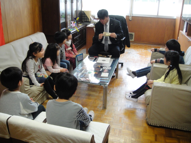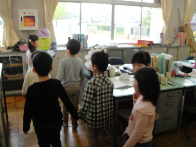 20日(木)、21日(金)、「学校探検」が行われました。生活科の学習で、2年生が1年生を連れて校内をまわりました。2年生は1年生と手をつなぎ、職員室、保健室、体育館、校長室など、校内の教室を見学しました。緊張しながら1年生をリードする2年生の姿が印象的でした。校長室では、校長先生から、校章のマークの形が何を表しているのかについての話がありました。