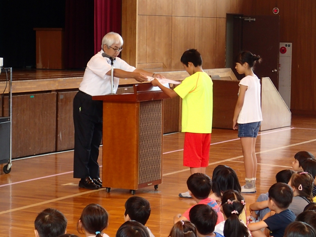 また、朝礼では「よい歯の表彰」があり、6年生が表彰されました。