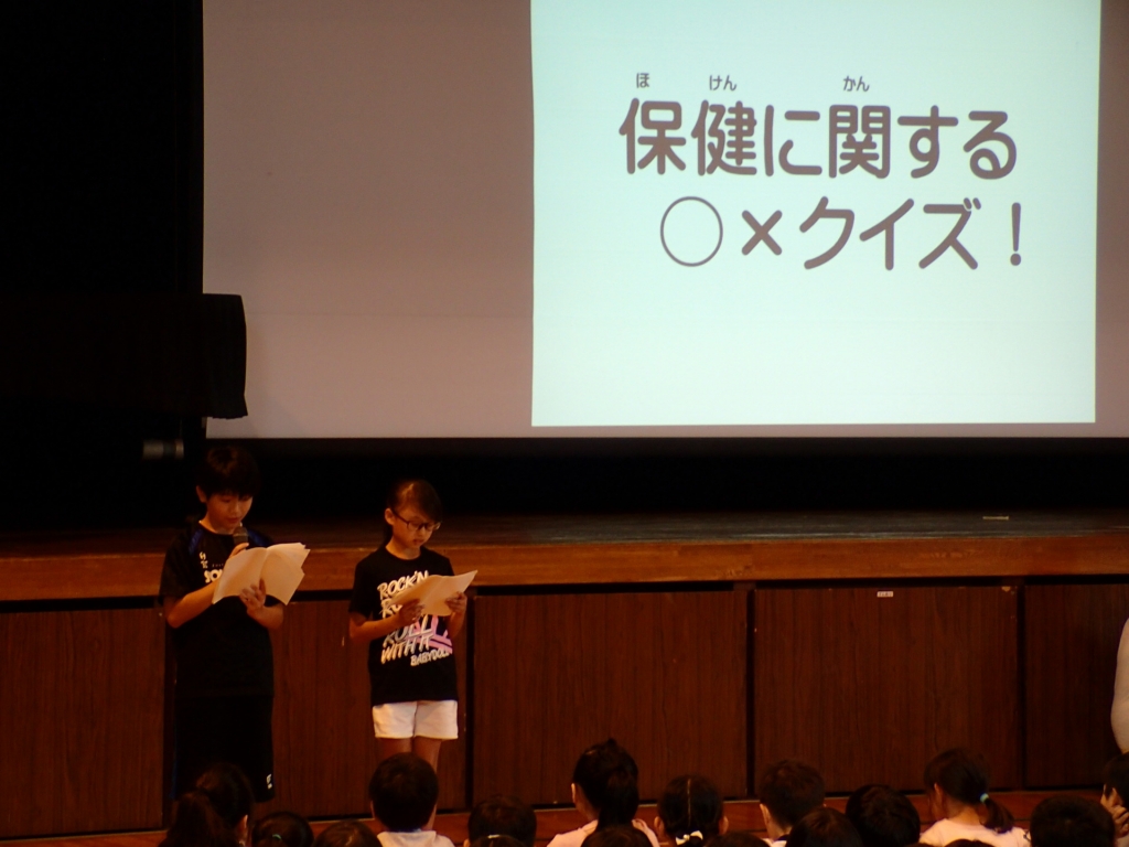 さらに、保健委員会による『ミニ保健集会』が行われ、クイズ形式で健康な生活について考えました。