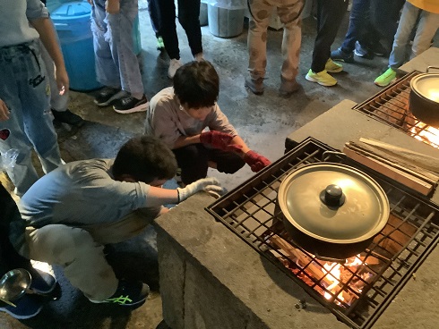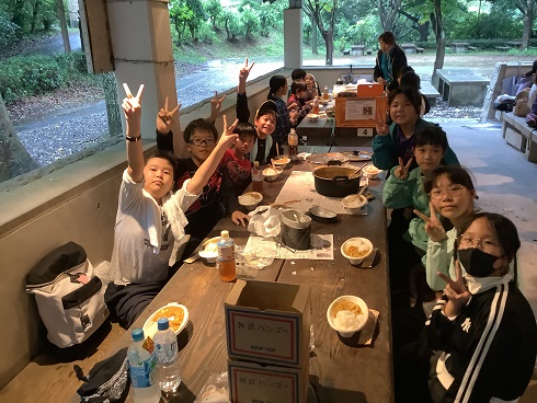 一日目は野外炊飯とキャンドルファイヤーです。事前学習で行った炊飯とスタンツの成果は十分に発揮され、楽しく活動することができました。