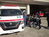 11月19日(水)に、3年生が消防署見学へ行きました。普段見ることのできない消防車や救急車の内部を見学し、放水体験もさせていただきました。市民の安全を守る消防士さんの仕事について、熱心に学ぶ貴重な体験となりました。
