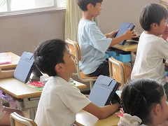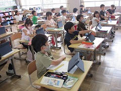 2年生がタブレットの使い方について確認していました。いつでも好きに使って良いわけではなく、授業の中でも使っていいときと悪いときがあります。うまく使えば便利な道具ですが、使い方を間違えるとと有害になってしまいます。
