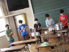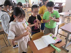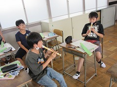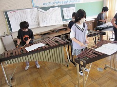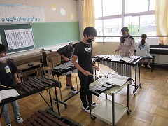 6年生が音楽で「茶色の小びん」の合奏練習をしていました。