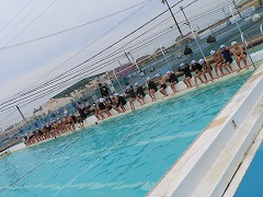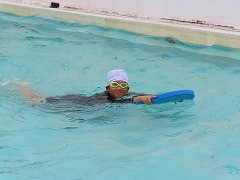 くすかしゆずはいろいろな水遊びとともに、潜る練習やビート板を使ってけのびやバタ足の練習をしました。