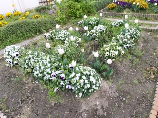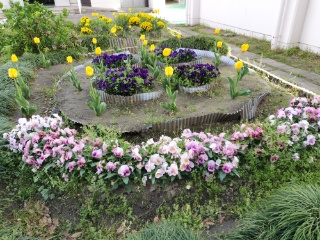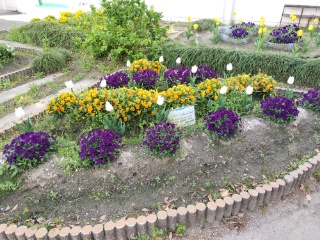 今年は暖かくなるのが早かったので、桜もチューリップも入学式の時にはほとんど散っていました。しかし、この花壇では、多くの花が競うように咲いており、子どもたちの目を楽しませてくれています。