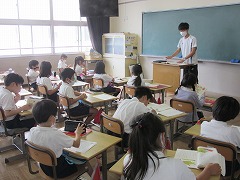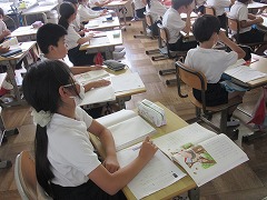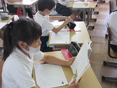 3年生が国語で、お話の読み取りをしていました。段落ごとに主人公やその他の登場人物の行動や心の動きを考えます。