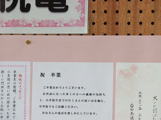 とうとう明日は卒業式です。今日は前日準備。5年生と4年生ががんばっています。5年生はインフルエンザで何人か休んでいるため、どの係も人手不足。一人が何役も兼ねています。休んでいる子の分までしっかりと働きました。4年生は初めてのお手伝いです。これも5年生に負けないほどがんばりました。31年度リーダーとなる2学年の、これからの活躍が楽しみです。すっかり準備がと整った教室と体育館を見ると、とうとうその日が来たという思いが高まります。明日はこの晴れの舞台から、55名の若鳥が巣立ちます。