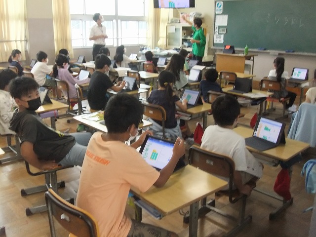 きょうから、プログラミング学習の先生に来ていただいて、先生も子どもたちも勉強です。