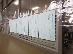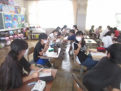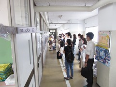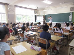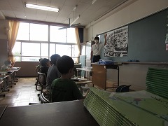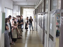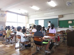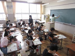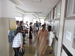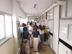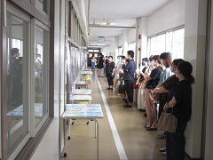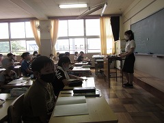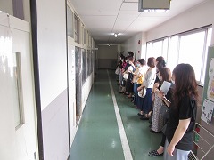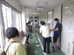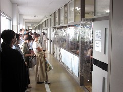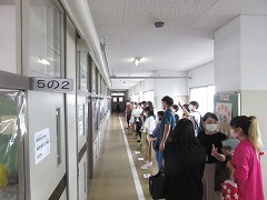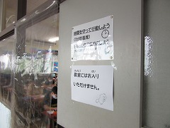 曇り空でむし暑く、参観日和とはなりませんでしたが、雨が降らなかっただけよかったです。飛まつ拡散防止シートがあると、教室内の様子がちょっと見にくかったかもしれません。