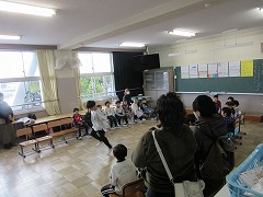 1年生は、みんなの前で今年出来るようになったことを発表して実際にやって見せました。鍵盤ハーモニカやなわとび、お絵かき、漢字、計算など様々なことが出来るようになりました。