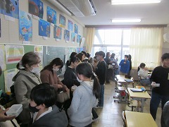6年生は、将来の自分を予想して作った人形をお互いに見せあって感想を書き、直前の時間に作った「ふくおう君まんじゅう」を保護者のみなさんにお渡ししました。