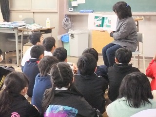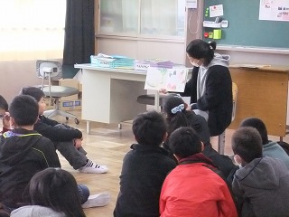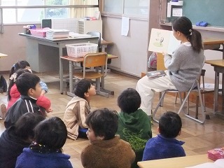 きょうの朝には、おはなし会による読み聞かせが行われました。