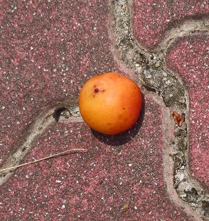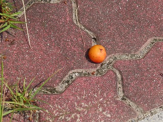 先日、職員室前の枇杷(びわ)の実がなったことを紹介しましたが、最近は別の木に実がなっています。熟したためかいくつか下に落ちていました。