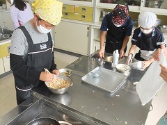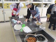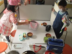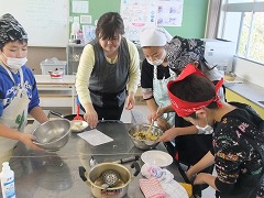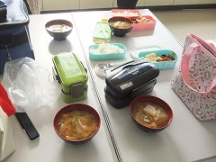 きょうは5の2の調理実習です。一昨日に続き、弁当の日のためのおかず作りと家庭科の『ごはんとみそ汁』をいっしょにやりました。