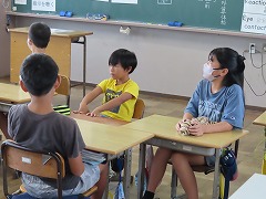 まずクラス内で少人数に分かれ、ある一つのテーマで自分の考えを言い合います。テーマと言っても、「好きなスポーツ」とか「最近はまっているアニメ」などのように一言で答えられるようなものが多く、時間もかかりません。聞いている人は、相手の話をうなずきながら聴き、決して否定はしません。