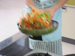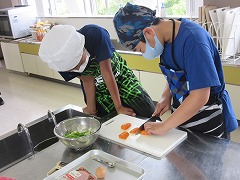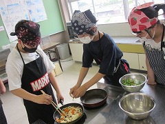 6年生が家庭科で調理実習を行いました。カラフル野菜炒めとスクランブルエッグです。