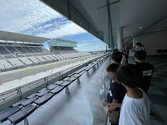 お弁当はサーキットのメインスタンドで。昼からはスズカサーキット!