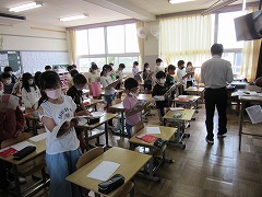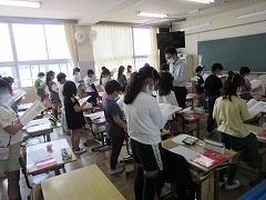 4年生が国語で、そろって朗読を行っていました。みんなで起立して教科書を持ち、気持ちをあわせて読みます。自分勝手に読むのではなく、他の友達の声を聞きながら声の大きさも合わせて読みます。たまに、読めない漢字があっても、一緒に読んでいれば流れで読めたり、読めなくても聞いて覚えたりします。