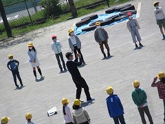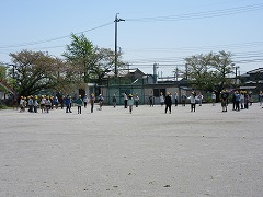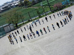 下の写真は何をしているところか分かりますか? 子供たちが運動場で並んでいるように見えます。