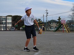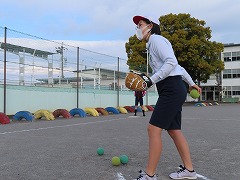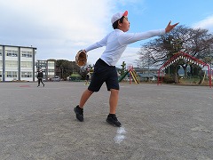 6年生が体育で、早速「大谷グローブ」を使ってみました。柔らかいソフトボールを使ってキャッチボールです。