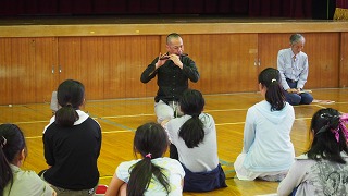 ちなみに今回来てくださった横笛(能管 「のうかん」と読みます)の先生は、先頃大阪であったG20の晩餐会でも各国首脳の前で演奏されたのだそうです。