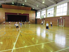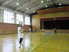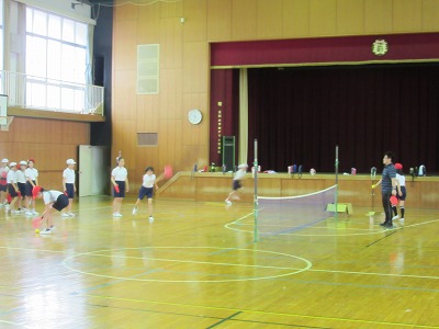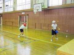 あま市に体育の振興に使ってくださいという寄付金をいただき、それで購入しました。子どもたちも先生も目新しい取組に、とまどいつつも熱心に取り組んでいます。スポンジのボールにプラスチックのラケットですが、さまざまな運動を経験することは、運動への興味を高め、楽しみを増やすことになります。生涯スポーツの礎がほんの少しですが、できたのではないでしょうか。