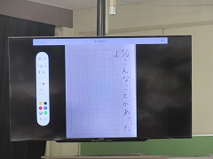ノートと同じマス目の紙をモニターに映して、どこに書くかを確認しながら、それぞれが書く内容を考えていました。