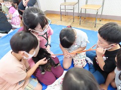 獣医さんならではのお話、接し方に1年生の子どもたちは興味しんしんです。
